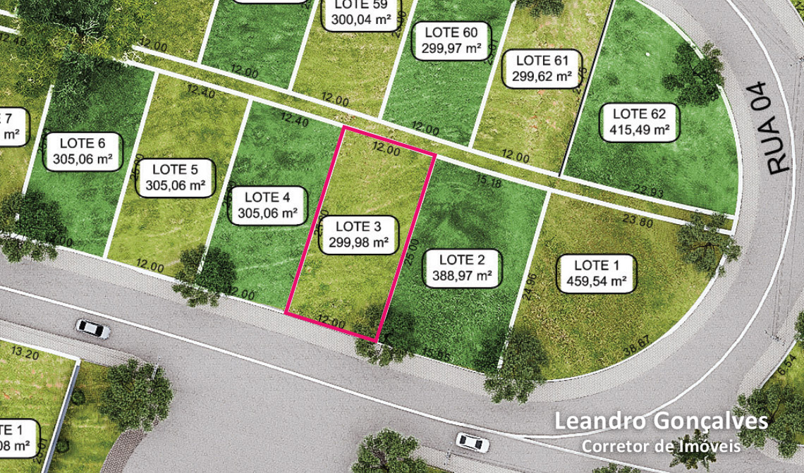 Lote 03 Quadra D no Residencial Bosque dos Ingleses em Manhuaçu-MG com área de 299,98 m².