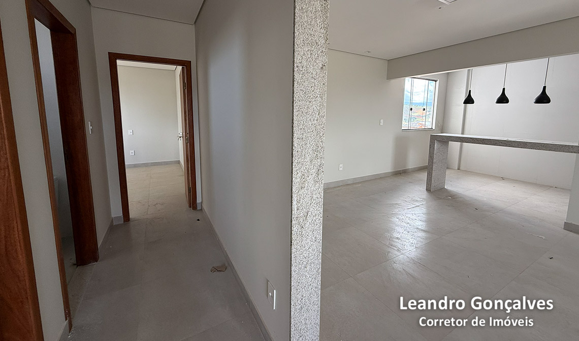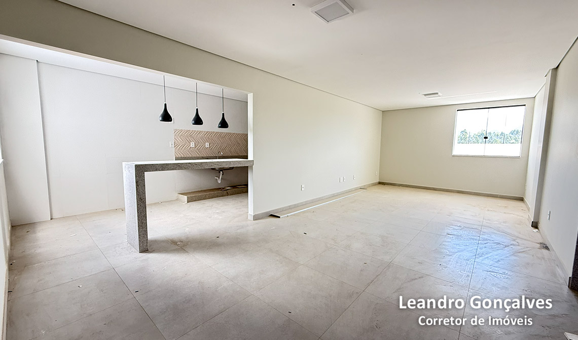 Com 1 suíte, 2 quartos, sala de estar e jantar conjugadas, banheiro social, área de serviço.
