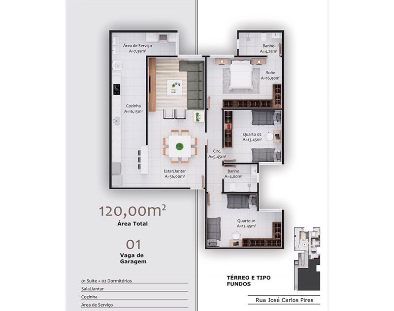 3 Quartos | 120 m²