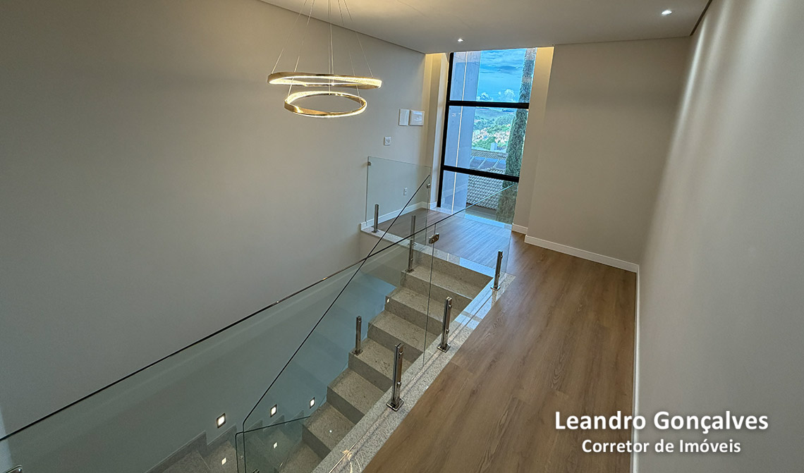 1º Andar: Varanda, sala de Tv, copa conjugada com cozinha estilo americana, banheiro social, área de serviço, área gourmet com churrasqueira.