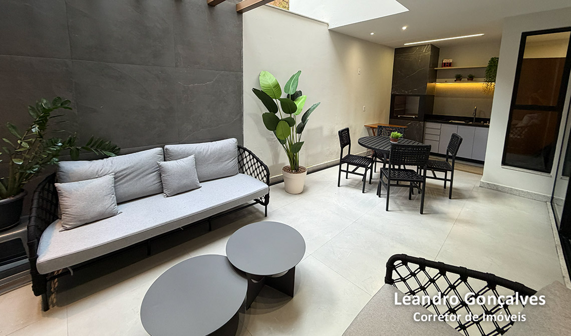 1º Andar: Varanda, sala de Tv, copa conjugada com cozinha estilo americana, banheiro social, área de serviço, área gourmet com churrasqueira.